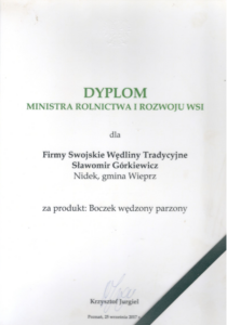 Nasze wyroby produkowane są w oparciu o tradycyjne receptury. Wędzone metodą naturalna – drzewem olchowym oraz bukowym.